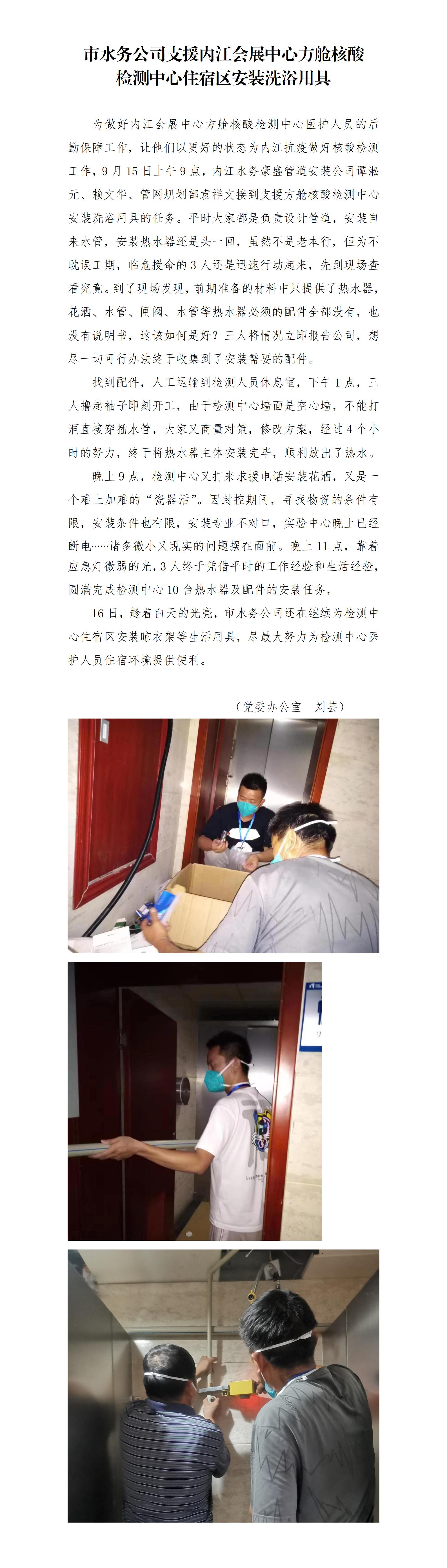 市水務(wù)公司支援內(nèi)江會(huì)展中心方艙核酸 檢測(cè)中心住宿區(qū)安裝洗浴用具