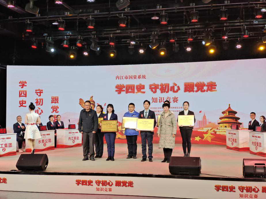 2021年12月28日下午,由中共內江市國有資產監督管理委員會委員會主辦,中共內江建工集團有限責任公司委員會承辦的內江市國資系統“學四史 守初心 跟黨走”知識競賽在內江廣播電視臺演播大廳舉行。來自市級各企業的8支隊伍24名選手參賽,我司選派的劉梅、袁琳、熊瑞凱3名同志代表參加了此次競賽。