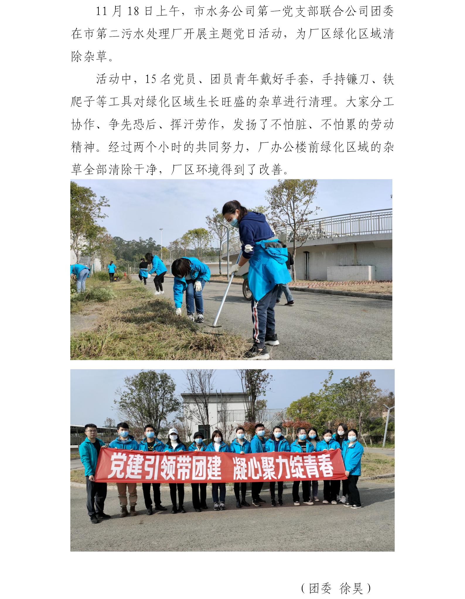市水務公司第一黨支部聯合團委開展除草志愿服務