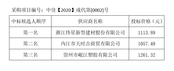 內(nèi)江市水務(wù)有限責任公司PPR給水管及管件采購項目評標結(jié)果公示