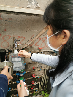 因受疫情影響,學(xué)校供水管網(wǎng)及相關(guān)設(shè)備長時間處于未使用狀態(tài),極易出現(xiàn)水質(zhì)問題。為確保校園用水安全,4月7日至8日,水質(zhì)檢測中心對城區(qū)及鄉(xiāng)鎮(zhèn)的23個中小學(xué)校供水進(jìn)行取樣檢測,并將數(shù)據(jù)反饋給生產(chǎn)技術(shù)部,為水廠制水適時調(diào)整消毒劑投加量提供科學(xué)指導(dǎo)。