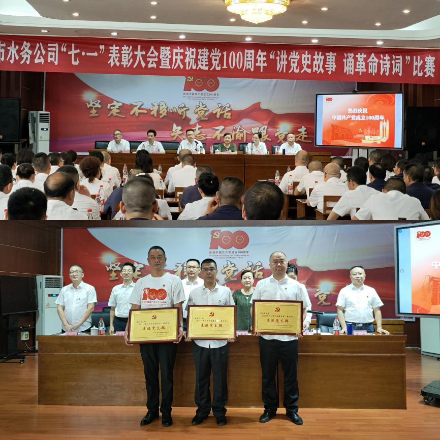 6月30日下午,在中國共產(chǎn)黨成立100周年之際,為表彰先進(jìn),弘揚(yáng)正氣,樹立典型,進(jìn)一步激勵各基層黨組織和廣大黨員履職盡責(zé),擔(dān)當(dāng)有為,推動企業(yè)持續(xù)向好發(fā)展。市水務(wù)公司黨委舉辦“七一”表彰大會暨慶祝建黨100周年“講黨史故事 誦革命詩詞”比賽。市國資委調(diào)研員梁素蓉,內(nèi)投集團(tuán)黨委委員、紀(jì)委書記曹德華出席會議,公司領(lǐng)導(dǎo)班子成員、各支部黨員代表近132余人參加會議。會議由黨委副書記、總經(jīng)理李濤主持。