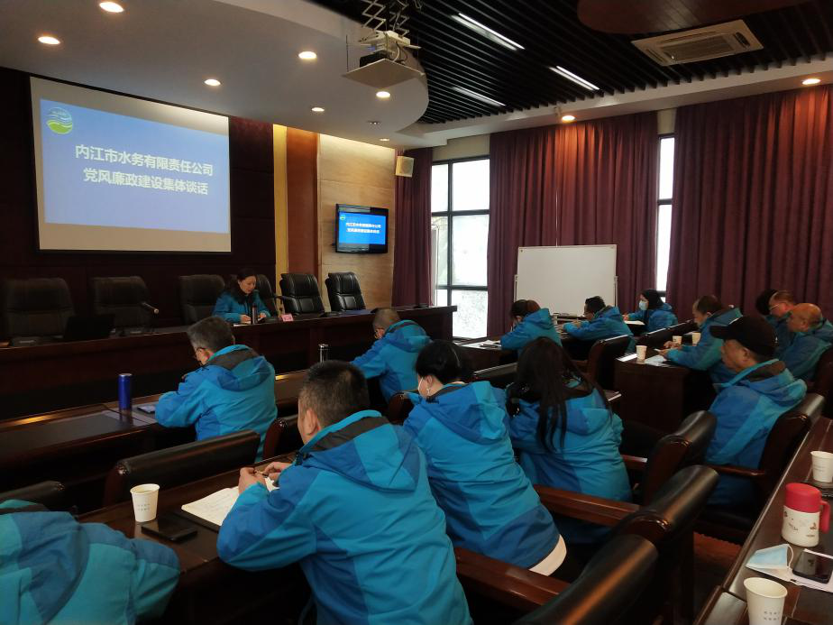 2021年12月29日,市水務公司黨委對各部門負責人進行黨風廉政集體談話。黨委副書記、總經理李濤代表公司黨委提了四點要求:一是堅持和加強黨的全面領導;二是加強和規范黨內政治生活;三是全面推進黨風廉政建設落實落地;四是健全防腐促廉長效機制。