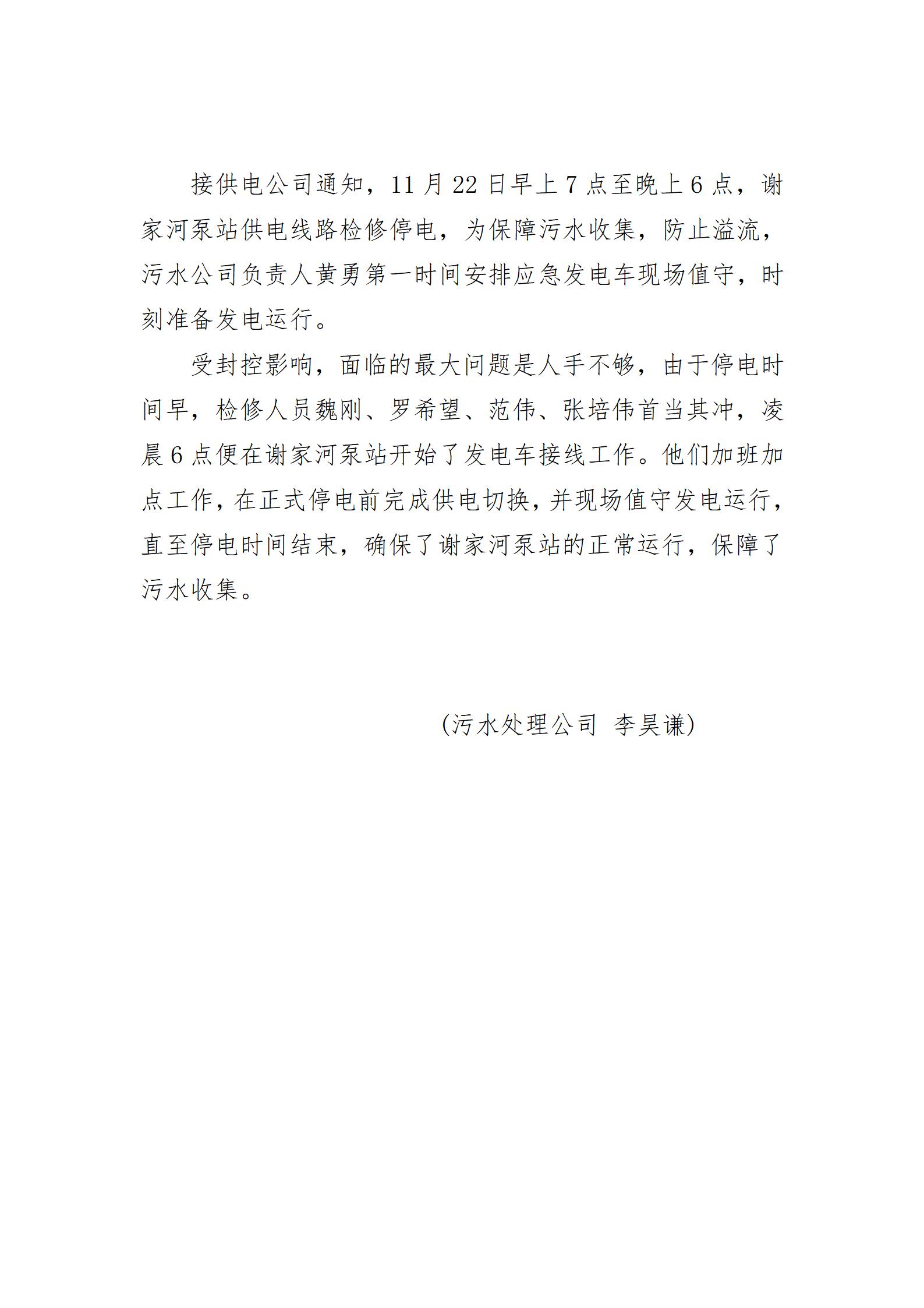 啟動應急發電 保障污水收集