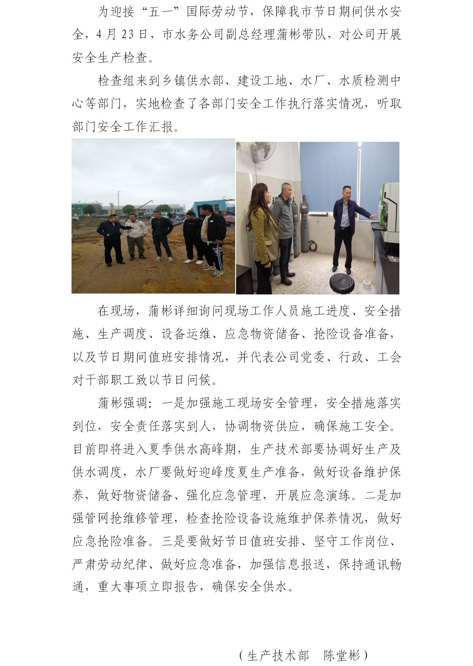 公司開展“五一”節前安全生產檢查