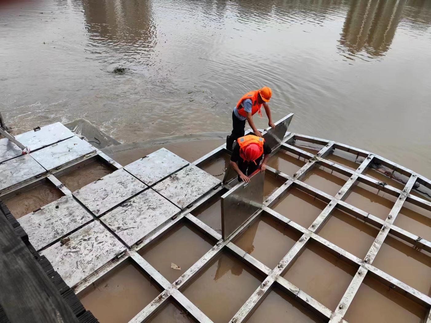 目前,市水務公司公司共出動防汛人員94人次,應急輛車22輛,各水廠、污水廠和供水管網運行正常。污水提升泵站部分欄桿和圍堰蓋板不同程度受損;玉帶溪防洪排澇污水提升集成泵站鋼板樁圍堰受損,造成鋼板樁變形,暫不影響正常泄水;臨江小區建材市場內因塌方損壞管網已停水,居民已全部安全轉移,待小區安全隱患排除后立即開展管道搶修工作。