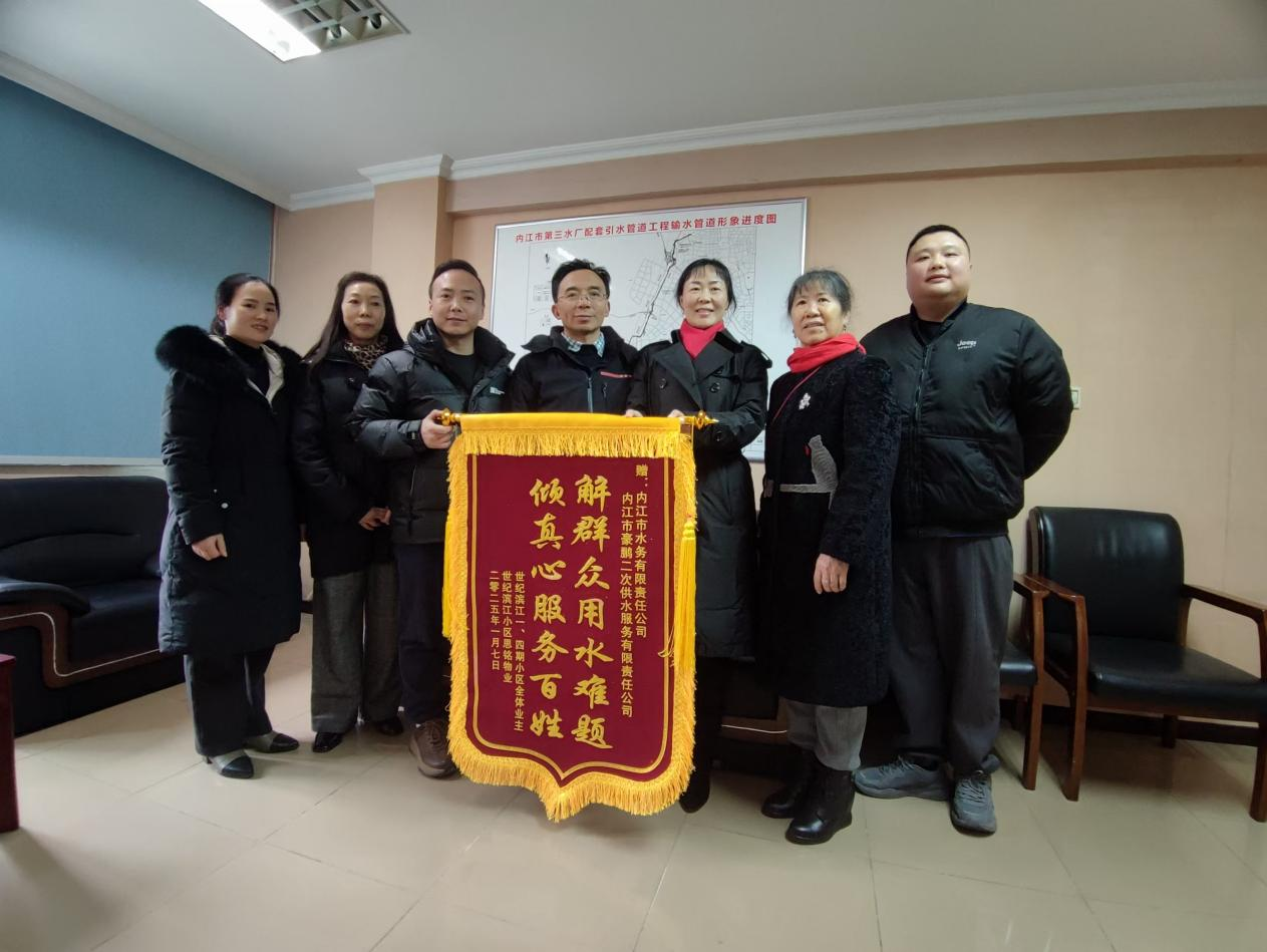 豪鵬二供公司黨支部積極踐行便民舉措、主動(dòng)作為的舉動(dòng),贏得了世紀(jì)濱江業(yè)委會(huì)及物業(yè)的高度認(rèn)可,并送錦旗向豪鵬二供公司表達(dá)誠摯的感謝與敬意。