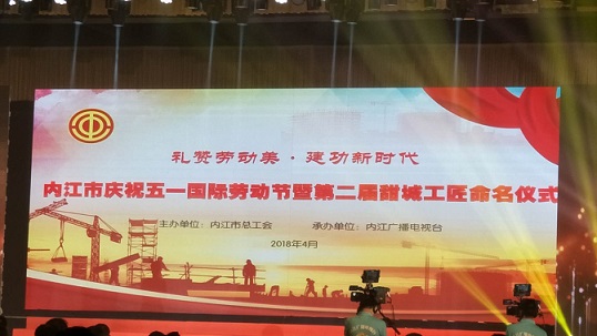 2018年4月26日下午,由市總工會舉辦的“禮贊勞動美·建功新時代”內(nèi)江市慶祝五一國際勞動節(jié)暨第二屆“甜城工匠”命名儀式在錦江國際酒店隆重舉行,市委、市政府主要領導參加了本次活動。