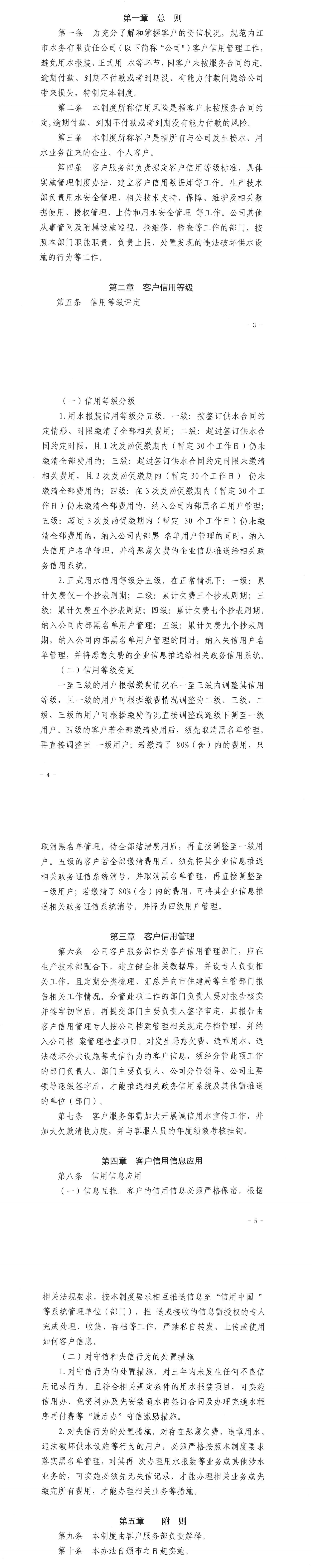 內(nèi)江市水務(wù)有限責(zé)任公司客戶信用等級管理制度 (試行)