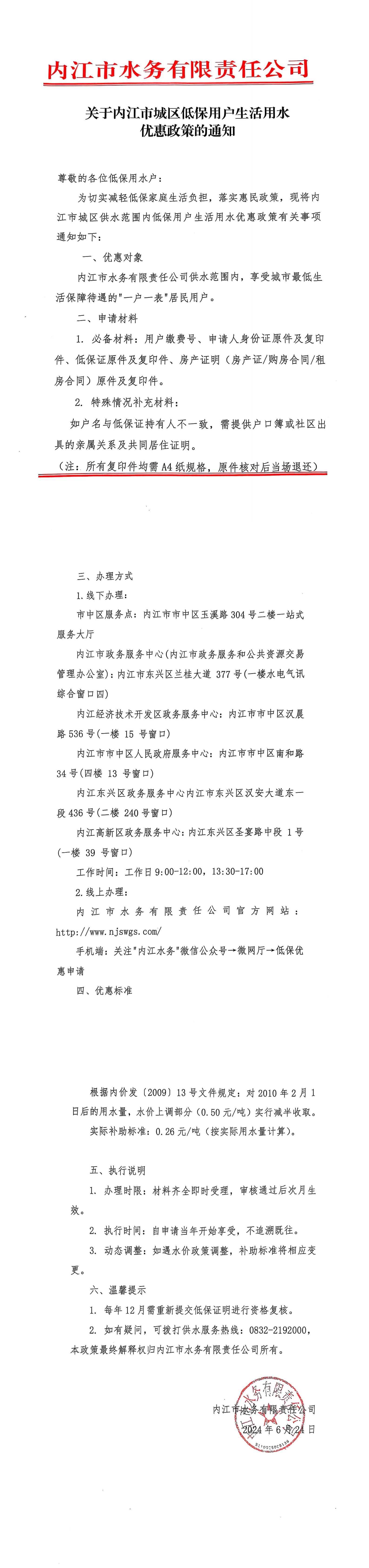 關于內(nèi)江市城區(qū)低保用戶生活用水優(yōu)惠政策的通知